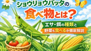 ショウリョウバッタの食べ物は何?草だけで育てて大丈夫?エサ・餌の種類や与え方、飼い方のコツを初心者向けにやさしく解説します。食べないときの対処法や注意点もわかります。